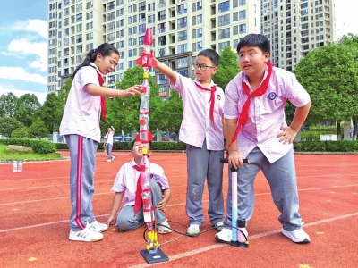 火箭创意绘画、纸飞机、无人机、水火箭、航模拼装、航天解说六大竞赛项目在专属场地同步开赛,各学段学生各展所长。
