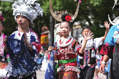 本报讯 (记者 廖尚海)9月20日14时许,第三届中国非物质文化遗产保护年会暨第四届丹寨非遗周迎来活动高潮——一场规模盛大、氛围热烈的数千人非遗巡游展演在黔东南州丹寨县城举行。