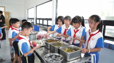 “给孩子们做饭菜,口味要适合小学生,清淡营养,不能放太多调料。还要考虑孩子们咬得动、好消化。看到孩子们吃得干干净净,笑着说:‘阿姨,今天菜真好吃’时,我们既开心,又特别有成就感。”学校食堂班长夏明会说。