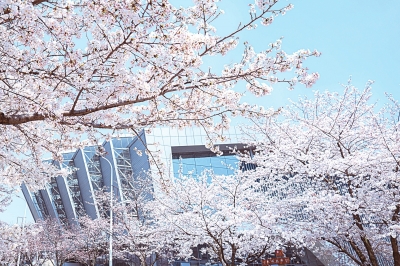 | 校园樱花盛开。 |