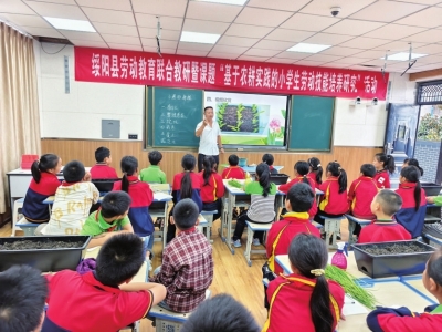 本报讯(记者 李秀锦 特约通讯员 吴胜 覃堂洪)9月23日,遵义市绥阳县郑场中心学校牵头举办“基于农耕实践的小学生劳动技能培养研究”联合教研活动,郑场、城南、蒲场三校30余名骨干教师齐聚一堂,通过“示范课展示—专题讲座赋能—评课议课研讨”三维联动模式,为县域农耕劳动教育高质量发展提供实践样本。
