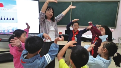 在杨亚男的课堂上,音乐从不是枯燥的乐理知识,而是能“玩”起来的快乐体验。她把抽象的“四分音符”“八分音符”变成“小音符精灵的脚步”,把单调的“音阶练习”变成“爬楼梯找好朋友”的游戏;她还发明了“手势音乐游戏”:手掌起伏代表旋律高低,指尖轻点模拟节奏快慢,孩子们跟着她边做手势边唱歌,在笑声与律动中就掌握了知识。下课后,孩子们总围着她叽叽喳喳:“杨老师,明天还能玩‘手势音乐游戏’吗?”