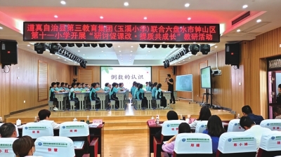 道真第三教育集团成员校校长、分管副校长及各学科骨干教师代表、冉继锋名校长工作室成员学员,玉溪小学全体语文、数学、英语教师聚焦小学数学、英语提质及多样态阅读等领域,通过示范课观摩、联合诊断、专题研讨、讲座引领等多种形式,为深化校际合作,推动课堂教学改革及促进基础教育高质量发展注入了新动力。
