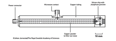 三位科学家构建了一个使用超导电路的实验装置。承载该电路的芯片尺寸约为一厘米。此前,隧穿效应和能量量子化主要在仅含少数粒子的系统中被研究;而在此实验中,这些量子现象出现在一个包含数十亿个库珀对的宏观量子系统中,这些库珀对遍布整个芯片上的超导体。因此,这项实验将量子效应从微观尺度推进到了宏观尺度。