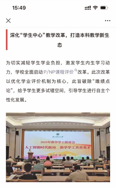 浙师大的改革方案中,将《大学生心理调适与发展》《大学生职业生涯规划与就业指导》等公共基础课,以及《师德养成》《特殊教育概论》等教育理论课程和教育见习、研习等教育实践类课程,《人工智能基础》《智能医学工程概论》等专业课程,全面采用P(通过)/NP(不通过)二级制评价。