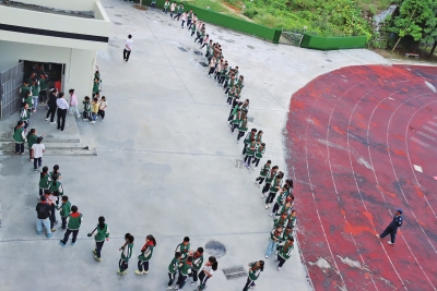 | 学生依次进入餐厅。 |