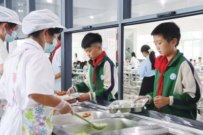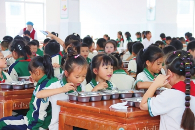 如今,每天一个鸡蛋、一两肉、一份水果,每周至少三次牛奶的营养搭配,已实实在在地成为学生们健康成长的有力保障,让校园餐真正成了滋养祖国未来的“幸福餐”。