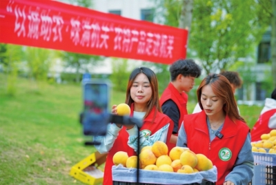 活动中,贵州电子商务职业技术学院组建专业志愿者服务团队,采用“线下展销+线上直播”双驱动模式,将小坡村的黄桃、手工辣椒面、脱水土豆片等特色农产品送进机关、推上云端。