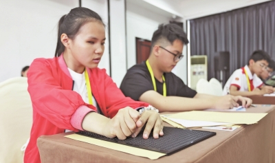 黔南州特殊教育学校的参赛故事同样动人。为培养特殊孩子的读写兴趣,该校不仅配备专业盲文阅读室,购置盲文点显器、盲文电脑、放大器等辅助工具与各类盲文书籍,还在食堂、教学楼设立图书室与阅读区,让学生随时随地能“读”书。寒暑假期,学校还组织阅读活动,持续激发学生的读写热情。该校学生杨银柔凭借 《指尖的光芒:在盲文里触摸生命的力量——<生命的追问>读后感》一文征服了评委老师。她在赛场笑着分享:“贵青杯”对我来说像个温暖的舞台,2021年开始参加“贵青杯”征文活动就拿过一等奖,这次写读后感,虽然眼睛看不见,但和指导老师用微信逐字沟通时,老师帮我梳理书中细节,引导我把心里的想法准确写出来,整个过程特别踏实,能来现场交流写作,就是对我努力最好的肯定。我一直没停下学习盲文的脚步,摸着盲文“读”书、用盲文写字时,我觉得自己和其他同学一样,都能通过文字去探索世界。未来我想继续用盲文把我“看到”的世界讲给更多人听。