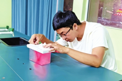 | 刘发波在做科学实验。 |