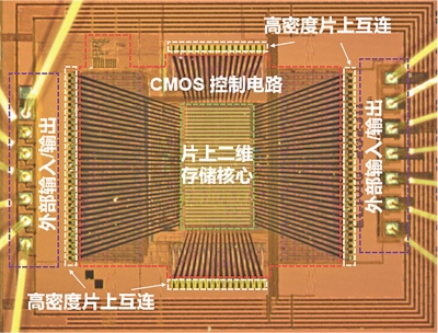 | 二维-硅基混合架构闪存芯片光学显微镜照片。 |