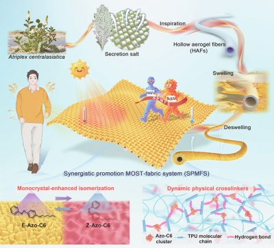 10月11日,记者从天津大学获悉,该校封伟教授团队受盐碱地植物“吸盐—泌盐”机制启发,成功研发出一类新型分子太阳能热 (MOST) 织物。该织物兼具高效光热转换与优异力学性能,无需依赖复杂电子设备,即可实现“智能保暖”功能。实验表明,在-20℃的低温模拟日光环境下,该织物能在50秒内迅速升温21.2℃,为下一代可穿戴热管理技术的发展开辟了新路径。相关研究成果近日发表于材料学国际期刊 《先进材料》。