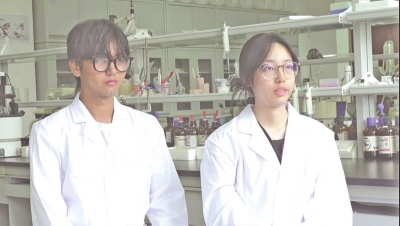 | 民族医药学院新生石尚阔(左)、张婉华讲述他们与民族医药的故事。 |