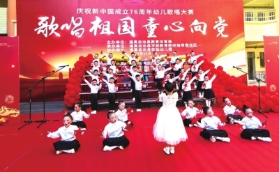 本报讯 (记者 周朝义 特约通讯员 韩丹 余静)10月10日,道真自治县教育体育局在庆祝新中国成立76周年之际,联合县学前教育教研指导责任区以“歌唱祖国·童心向党”为主题,举办了全县幼儿歌唱大赛。来自全县各幼儿园近600名小朋友在集体合唱和独唱/对唱两个类别的比拼中,用他们稚嫩而清澈的歌声,表达对祖国母亲最纯真的热爱,展现了新时代幼儿朝气蓬勃的精神风貌。