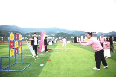 此外,“神箭飞镖”“击退烦恼飞盘运动”和“机智高尔夫”区域同样热闹,学子们投掷飞镖、掷出飞盘、认真挥杆,积分达标或命中目标者纷纷赢取印章。学子们穿梭于各游戏点,积极集章,期待参与最终抽取神秘奖品。