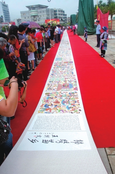 | 90米长卷 《锦绣苗乡》,作为龙里县庆祝党的90岁华诞献礼被国家民族文化宫收藏。 |