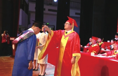 | 范祚军校长为毕业生拨穗。 |