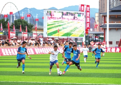 | 榕江一中和榕江第三高级中学在“村超”足球场进行“班超”比赛。 |