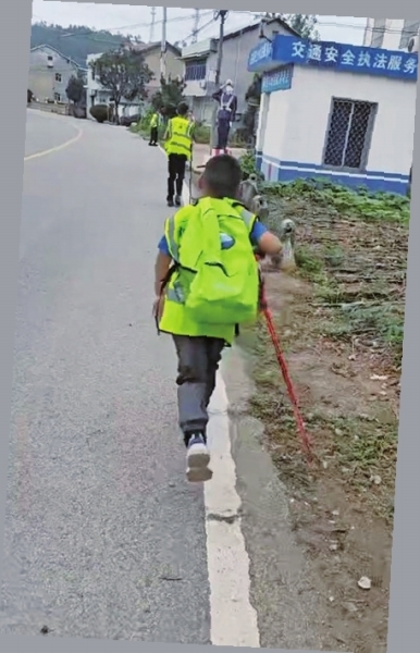 “我们是10月1日从湖南慈利县出发的,这是徒步的第14天,我们现在在湖北荆门。本来今天是休息的,但是昨天下雨,我们提前休了,但是今天依然在下雨,我们还是要继续前进。”10月14日,记者联系到余先生时,他正带着儿子小景冒雨徒步。
