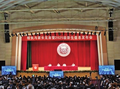 18岁的女儿成了他的校友。这一天,可容纳3000多人的礼堂座无虚席,还有人坐在台阶上。家长从全国各地而来,现场很安静,少有人交头接耳,舞台上拉着“校长与家长见面暨2025级新生信息发布会”的条幅。校长和各部门负责人介绍学校的教学、科研、升学、就业、后勤情况。