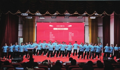 在教学展示阶段,唐建荣教授带领“百年党史·一路红歌”音乐党史课展演团队以 《大刀进行曲》《团结就是力量》 《保卫黄河》等经典曲目为主线,激情呈现了贵州省思政金课的风采。