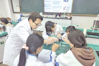 本报讯(记者 潘国虎 实习生谢欢欢)10月19日,黔南民族师范学院化学化工学院学生第二党支部携手贵州大学化学化工学院实验中心走进都匀第一中学,以“化学与生活”为主题开展科普活动,旨在激发青少年对化学的好奇心,播撒创新与探索的火种,让科学精神在青春沃土中生根发芽。