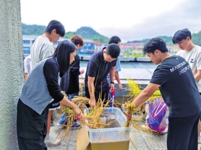 如何让劳动教育不再停留于书本? 学院“一站式”学生社区尝试将水稻“请”进校园,把学生社区的闲置空地改造为融劳动实践与心理疗愈于一体的“田间课堂”。从搬运土壤、精准育苗,到春播秋收、轮班守护,学生们在完整种植周期中亲历农耕艰辛,感知生命成长。劳动教育教师谢双雪介绍:“我们以‘理论+实践’为路径,让学生在真实劳作中理解‘粒粒皆辛苦’的民生温度,领悟粮食安全的深远意义。”