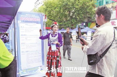 “家人们看过来! 这个新能源技术岗月薪5000起,缴纳五险一金,专业对口的朋友赶紧点下方链接投简历!”“苗侗就业通”抖音号的直播镜头前,经过系统培训的“就业创业推荐官”手持岗位清单,一边详解工作内容、薪资福利,一边实时回复弹幕里“工作地点在哪”“有没有晋升空间”等问题,让求职者足不出户就能“云选岗”。