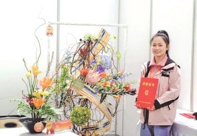 马迪老师也持有同样观点。“我希望通过参赛检验自己的专业能力。”来到赛场后,她发现选手们个个专业精湛、实力不凡。“能有机会向各位高手学习,真的受益匪浅。”她表示,通过比赛不仅巩固了插花基础技巧,更坚定了继续深耕花艺的决心。马迪特别感谢学校的大力支持:“无论是及时解答专业问题,还是协调比赛工具,学校都为我们创造了良好的备赛环境。专门准备的花艺实训室,更是让我们能够安心练习。”