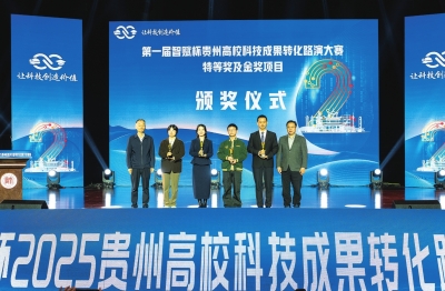 本报讯(记者 刘绍波)10月28日,由贵州省教育厅、贵州省科学技术厅、贵州省市场监督管理局(知识产权局)、贵州省工商业联合会主办,贵州大学、贵州师范大学、贵安新区花溪大学城管委会联合承办的2025年“智赋杯”第二届贵州高校科技成果转化路演大赛初赛在贵州师范大学开幕。
