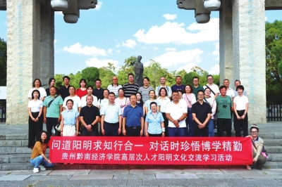 本报讯 (特约通讯员 龙针龙) 近日,黔南经济学院组织40余名教职工赴贵州中医药大学时珍学院、修文县阳明文化园学习交流,传承中华优秀传统文化,深化内涵式高质量发展。