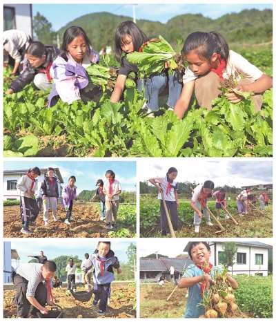 | 孩子们下到田间地头。 |