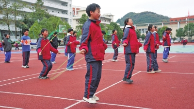 | 六枝五中学生在上体育课。 |