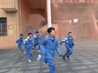 观展结束后,校园消防应急疏散演练在消防指战员和学校老师们的协同配合下,全校3000余名师生用时5分钟,沿预设疏散路线有序、迅速撤离至足球场,完成全员集结。