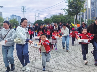 11月7日,惠水县第一幼儿园分场地开展“秋尾寻橙黄·初遇冬日光”秋游主题教育——小中班幼儿在涟江胜景中触摸初冬肌理,大班亲子在米丹桥共赴秋尾之约,一场兼具自然探索、劳动体验与亲子温情的初冬盛会,在孩子们的笑声中圆满落幕。
