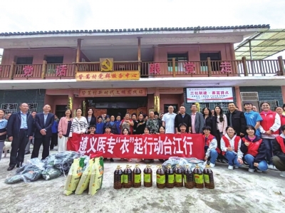 本报讯(特约通讯员 龙芳) 近日,由遵义医药高等专科学校党委副书记张武晓带队,学校师生代表共计30余人赴黔东南苗族侗族自治州台江县老屯乡皆蒿村,开展“衣”起行动爱心捐赠与慰问活动。师生们带着精心筹备的物资与专业服务,为皆蒿村村民送去关怀,以实际行动践行高校社会责任,为乡村振兴注入青春力量。
