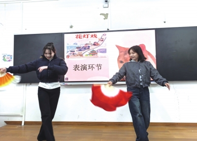| 老师在课堂上展示“花灯戏”。 |