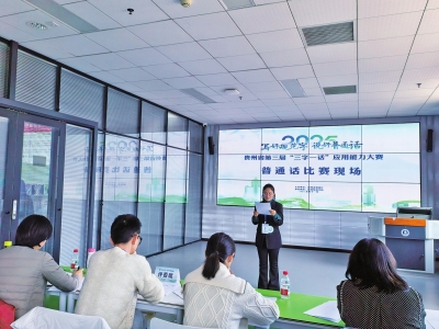 本报讯 (记者 杨凯)“写好规范字,说好普通话。我们将言传身教,做好学生的引路人,争做新时代好教师。”11月15日,贵州省第三届“三字一话”应用能力大赛在贵州师范学院圆满落幕,来自全省9个市 (州) 中小学教师及17所本 (专科) 院校学生共168名选手共同角逐胜负,全方位展示教学基本功与职业风采。