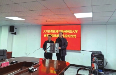 本报讯 (记者 陈瑞 特约通讯员 张伦勇)近日,毕节市大方县教育局与贵州师范大学体育学院成功达成足球工作战略合作,标志着双方正式建立深度战略合作关系,共同推动大方县青少年足球事业迈入依托高校专业资源、实现科学化、系统化发展的新阶段。