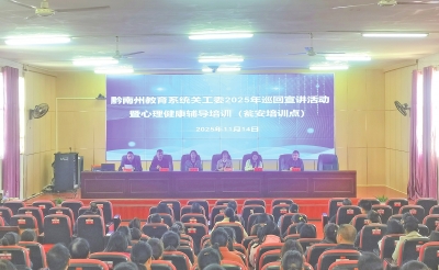 本报讯(特约通讯员 瞿远恒 谢绍刚 罗永军)11月14日上午,黔南州瓮安五中大会议室内座无虚席,瓮安县家庭教育暨心理健康辅导巡回宣讲活动如期举行。活动由瓮安县教育局关工委牵头,紧扣《全国家庭教育指导大纲(修订)》《关于健全学校家庭社会协同育人机制的意见》,聚焦青少年成长与家庭教育难点,为家校社协同育人搭台。瓮安县教育局关工委相关负责人、瓮安五中领导班子及全县多所学校教师、家长代表共200余人参会,共探科学育人之道。