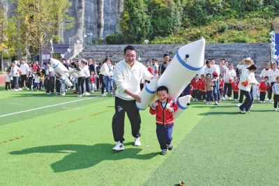 本报讯(记者 周朝义 特约通讯员 康婷婷 詹云)11月15日,一场融合亲子温情与家国情怀的航天主题运动会,在遵义市红花岗区第四幼儿园温情启幕。活动以“星辰为幕,运动为章”,将童真活力与家国情怀巧妙融合,为孩子们打造了一场兼具趣味与教育意义的运动盛会。
