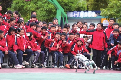 | 流动科学课进校园活动,从江县城关第四小学的学生和机器狗互动。 龙梦前 摄(影像贵州) |