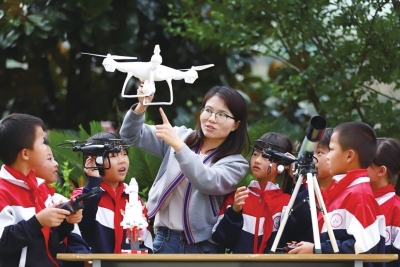 | 黔西市林泉镇瑶坪小学的教师和学生在校园里上科技课。侯进勇 摄 (资料图) |