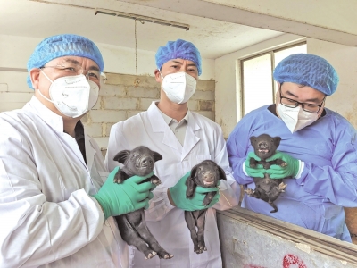 9月20日,贵州大学动物科学学院科研团队通过体细胞核移植技术,成功获得首批混合体细胞克隆地方猪——3头健康的白洗猪仔猪,其中2头为母猪、1头为公猪。