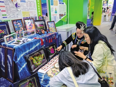 本报讯(记者 杜娟 特约通讯员 潘梅花) 来自黔东南州雷山县的教师代表,带着雷山县第三小学同学们精心创作的非遗苗族刺绣作品精彩亮相。这些蕴含着苗族文化基因与孩童无限创意的作品,成为展览会上一道亮丽的风景线,赢得了与会专家、教育同仁及社会公众的广泛赞誉。
