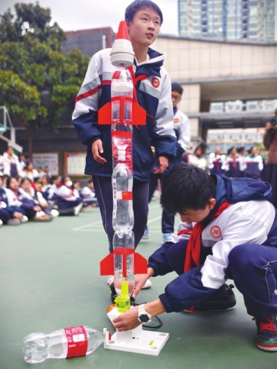 | 水火箭发射。 |