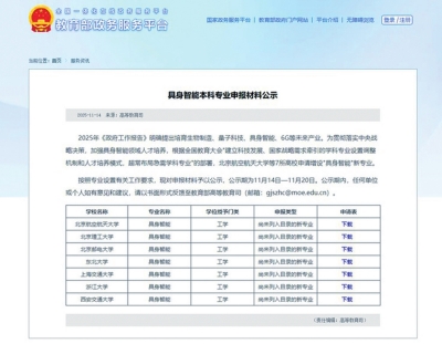 近日,教育部公示了7所高校布局“具身智能”新专业。