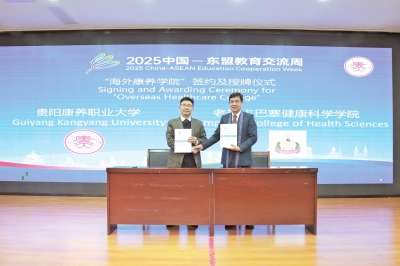 活动中,贵阳康养职业大学与老挝占巴塞健康科学学院举行了“海外康养学院”合作签约及授牌仪式。贵阳康养职业大学党委副书记、校长田维毅与占巴塞健康科学学院院长邦坎・佩塔尼共同签署了合作文件,标志着双方在师资培养、课程共建与学生交流等方面的合作正式启航。