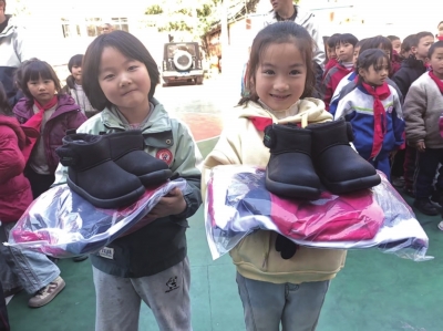 岩脚镇木贡小学六年级学生赵语湘接过志愿者手中的衣服和鞋子时,满脸笑容地说:“一定努力学习,用优异的成绩回报爱心人和爱心企业的期望。”