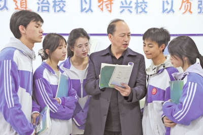 2018年,他明确“以特兴校”路径,打造艺体教育品牌:扩建专业教室、引进高校资源,推动学校连续三年获遵义市“特长生培养奖”,2024年艺体类本科录取达204人,位居全市前列。同时,他深耕教学改革,主持省级课题,发表多篇论文,并受聘高校讲授教学法,将经验辐射至更广师生群体。在他的带领下,桐梓县蟠龙高级中学本科上线人数从2016年的258人跃升至2024年的693人,获评“贵州省安全文明校园”和“遵义市艺术特色示范校”等30余项荣誉,为县域高中特色发展提供了“蟠龙样本”。